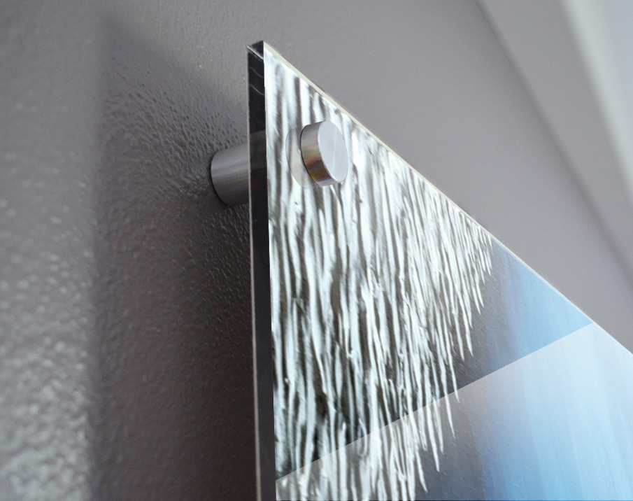Printed to the edge - Ready to hang - provided with 4 premium polished aluminum stand off ( wall screws and mounting hardware provided )