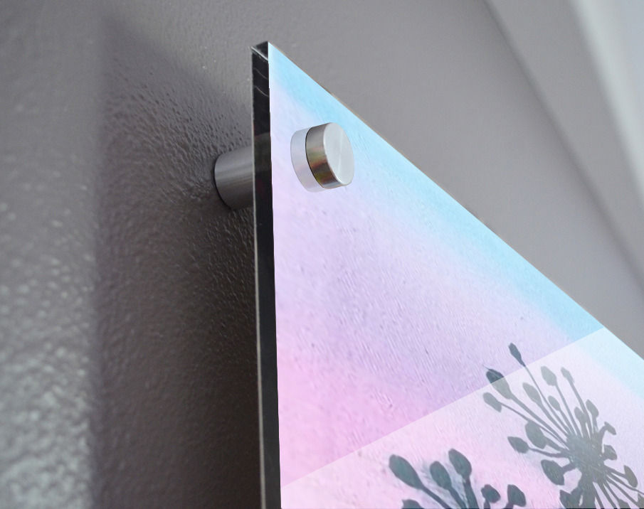 Printed to the edge - Ready to hang - provided with 4 premium polished aluminum stand off ( wall screws and mounting hardware provided )