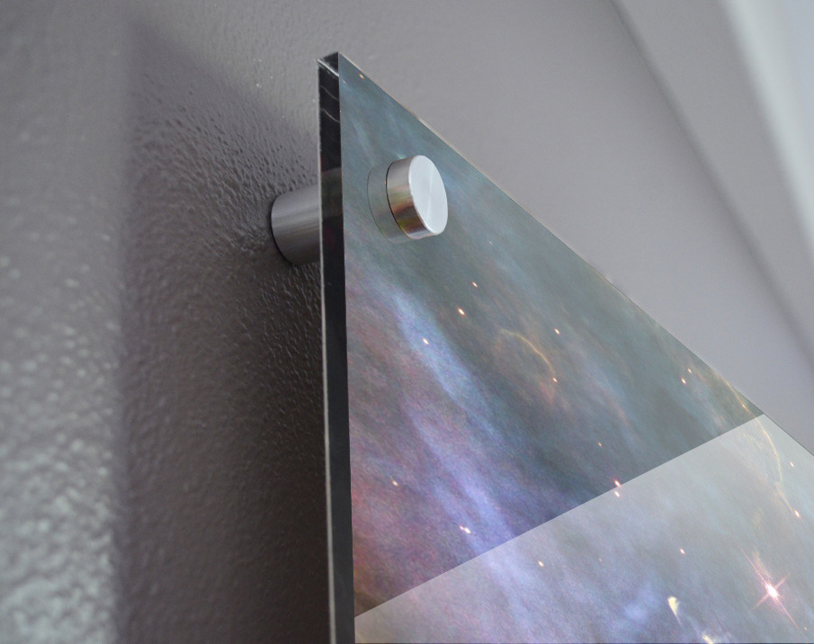 Printed to the edge - Ready to hang - provided with 4 premium polished aluminum stand off ( wall screws and mounting hardware provided )