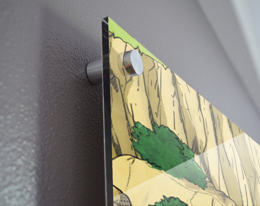 Printed to the edge - Ready to hang - provided with 4 premium polished aluminum stand off ( wall screws and mounting hardware provided )