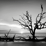 Even a sunrise can be beautiful in black and white. A solitary driftwood tree stands tall to greet the sunrise on Driftwood Beach in Jekyll Island, Ge...[+]