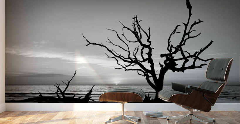 ICONIC TREE SUNRISE DRIFTWOOD BEACH BLACK AND WHITE