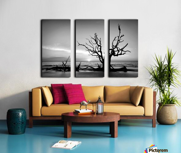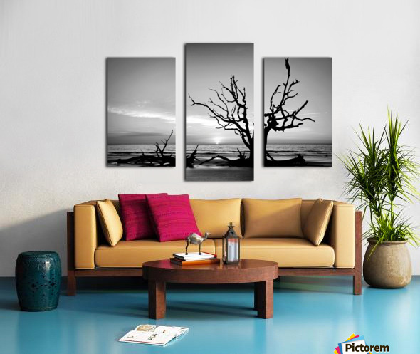 Iconic Tree Sunrise Driftwood Beach Black and White Canvas print