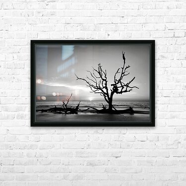 Iconic Tree Sunrise Driftwood Beach Black and White Picture Frame Printing