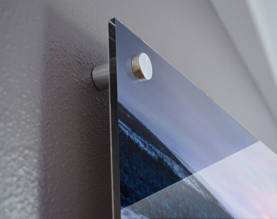 Printed to the edge - Ready to hang - provided with 4 premium polished aluminum stand off ( wall screws and mounting hardware provided )