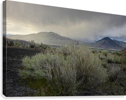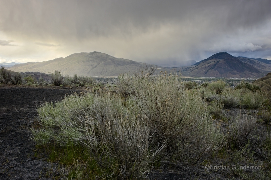 A brief evening rain storm rolling across the desert hills that surround Kamloops, BC.