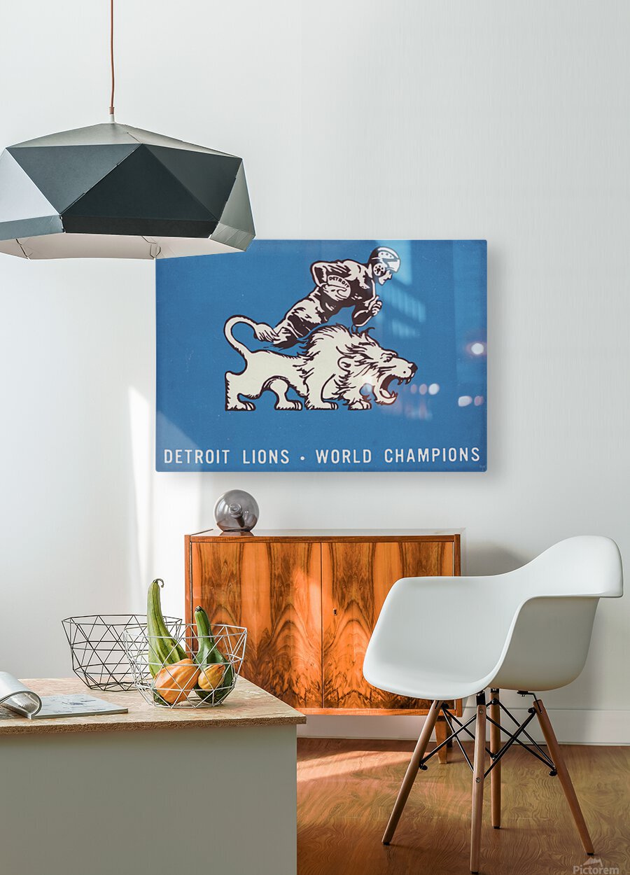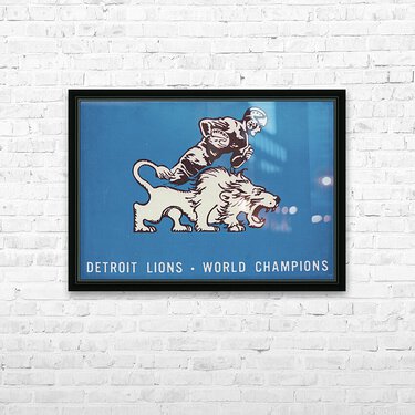 1957 Detroit Lions World Champions Art | Row One Brand | Real Retro | Row 1 | Free Shipping | 4,600 Historic Sports Art Prints | If you love the Detroit Lions, you will love this vintage fifties Detroit Lions art by Row 1. Created from authentic vintage Detroit artwork, this Row One sports art print celebrating the 1957 Detroit Lions football championship will look great in your game room or office. Row One Brand historic sports art prints are not affiliated with, licensed, sponsored, authorized, or endorsed by any team, league, artist, athlete, other brand, or any licensing entity. Only non-copyright and expired copyright, historic sports memorabilia is used by Row One to create our sports wall art prints. Derivative art © 2021 Row One Brand