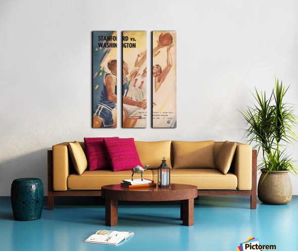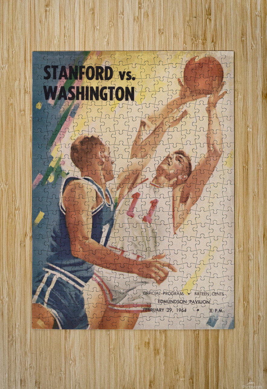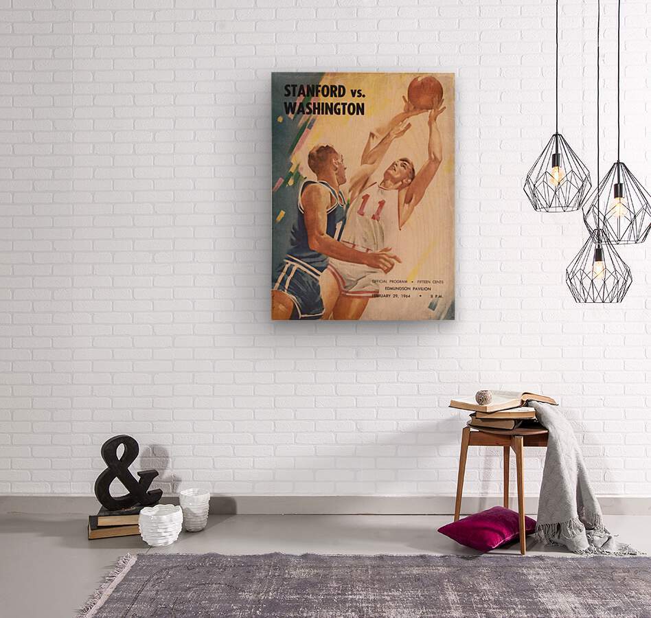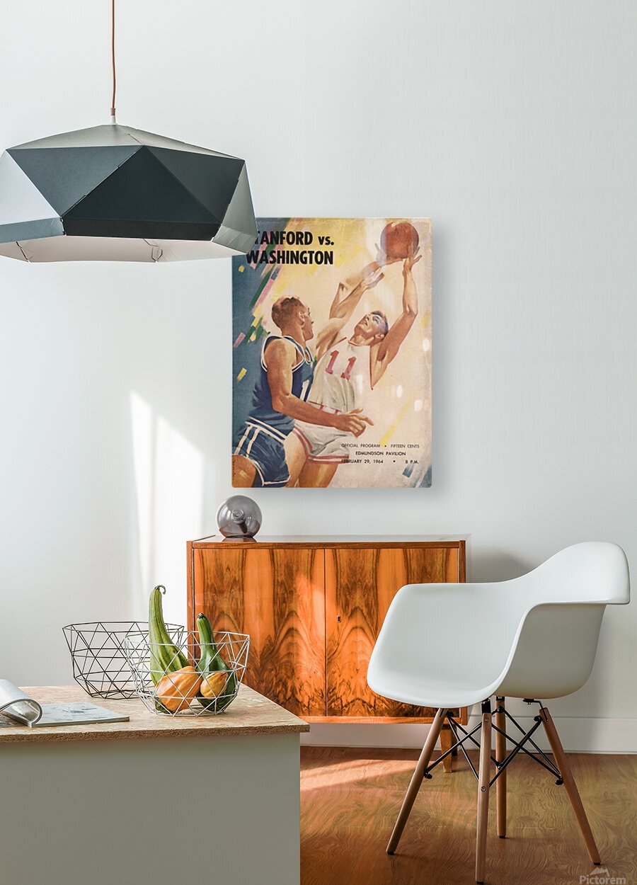 Artist Lon Keller | Row 1 | 1964 Washington vs. Stanford Basketball Cover Art | Row One Brand | Free Shipping | If you love Washington basketball, you will love this vintage 1964 University of Washington Huskies basketball cover art by legendary sports artist Lon Keller. This vintage Washington basketball art will look great in your Seattle game room or office. Row One Brand historic college sports art prints are not affiliated with, licensed, sponsored, authorized, or endorsed by any college, university, team, league, artist, athlete, venue, other brand, or any licensing entity. Only non-copyright, historic sports programs are used by Row One to create our vintage program cover sports art prints. Derivative art © 2021 Row One Brand