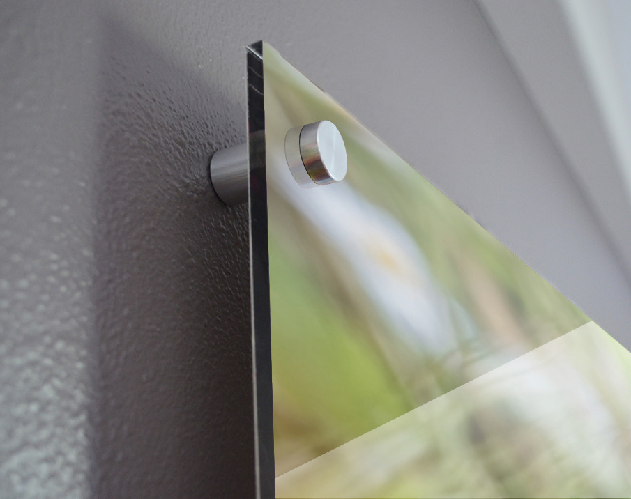 Printed to the edge - Ready to hang - provided with 4 premium polished aluminum stand off ( wall screws and mounting hardware provided )
