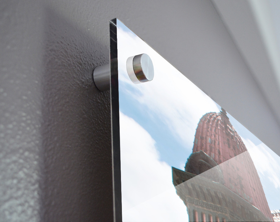 Printed to the edge - Ready to hang - provided with 4 premium polished aluminum stand off ( wall screws and mounting hardware provided )