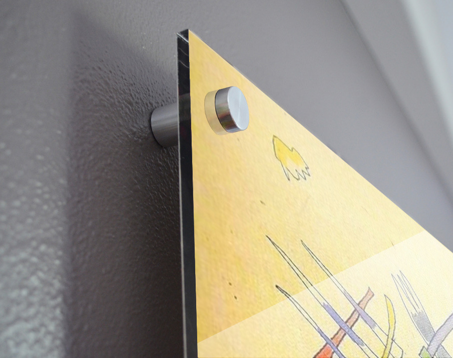Printed to the edge - Ready to hang - provided with 4 premium polished aluminum stand off ( wall screws and mounting hardware provided )