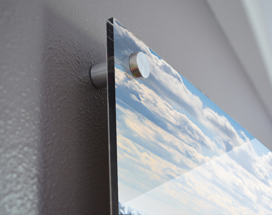 Printed to the edge - Ready to hang - provided with 4 premium polished aluminum stand off ( wall screws and mounting hardware provided )