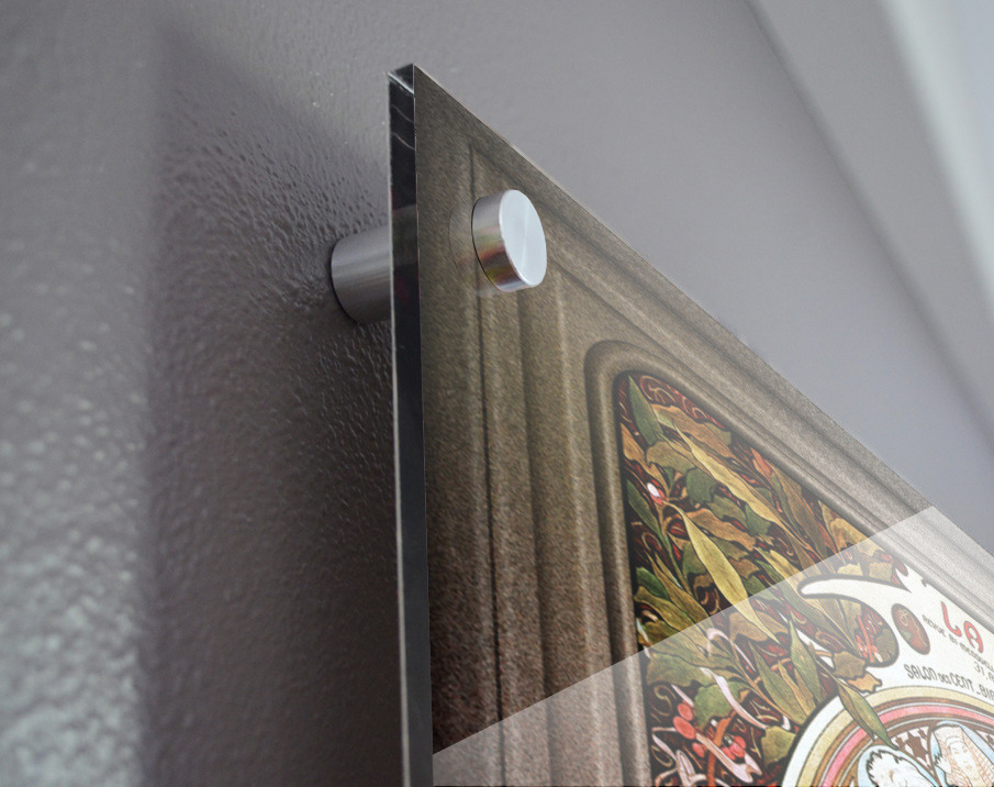 Printed to the edge - Ready to hang - provided with 4 premium polished aluminum stand off ( wall screws and mounting hardware provided )