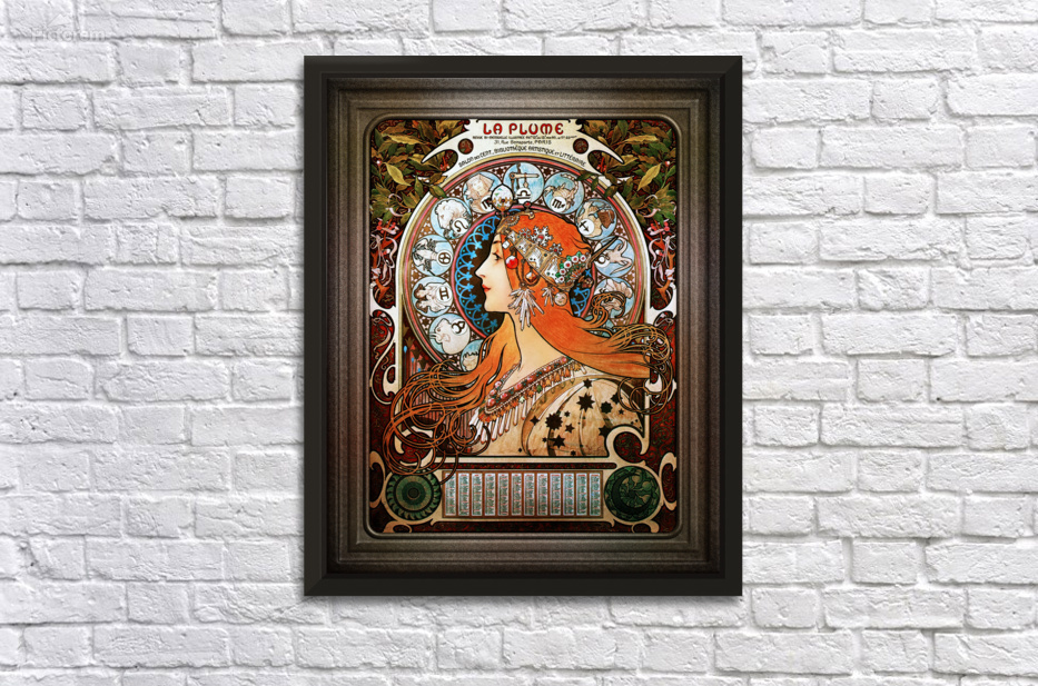 Zodiac 1897 Calendar by Alphonse Mucha Vintage Xzendor7 Old Masters Art Nouveau Reproductions Picture Frame Printing