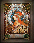 Zodiac 1897 Calendar by Czech Painter Alphonse Mucha (Alfons Maria Mucha: 1860 - 1939) one of the most popular and well known artist of the Art Nouve...[+]