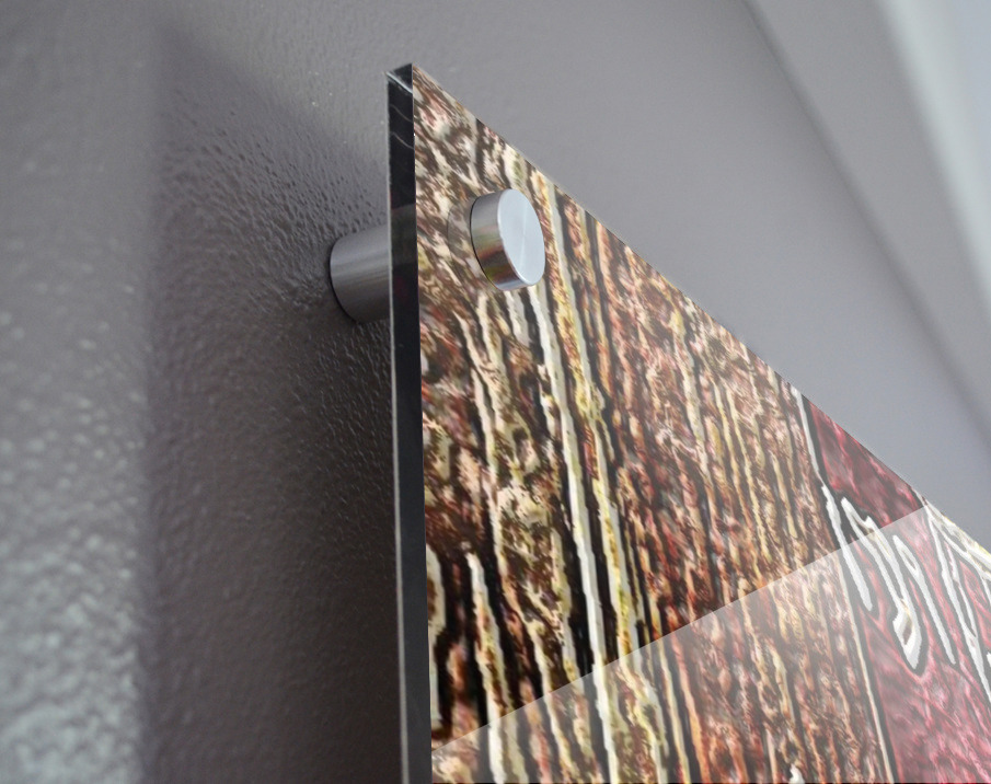Printed to the edge - Ready to hang - provided with 4 premium polished aluminum stand off ( wall screws and mounting hardware provided )