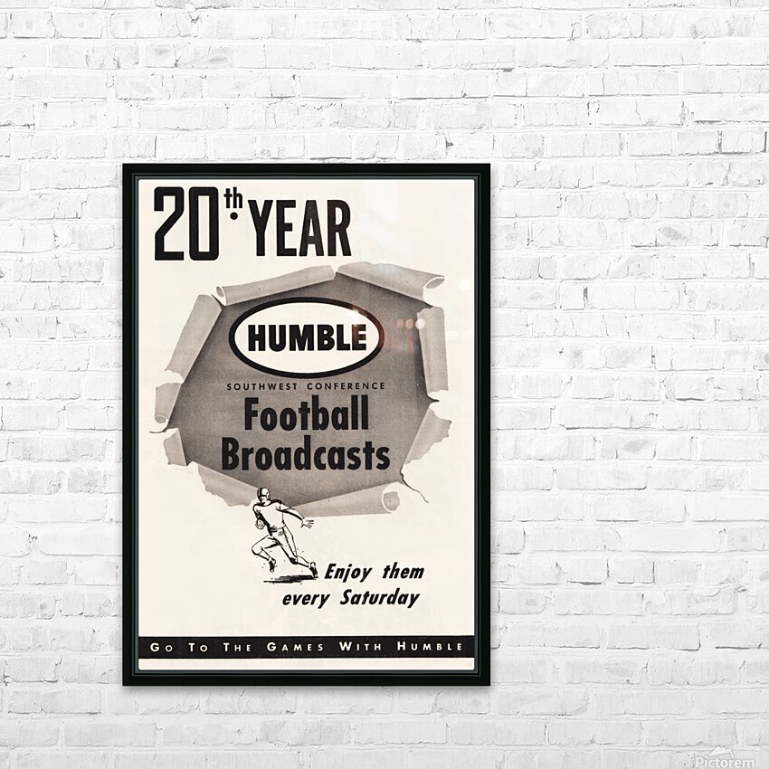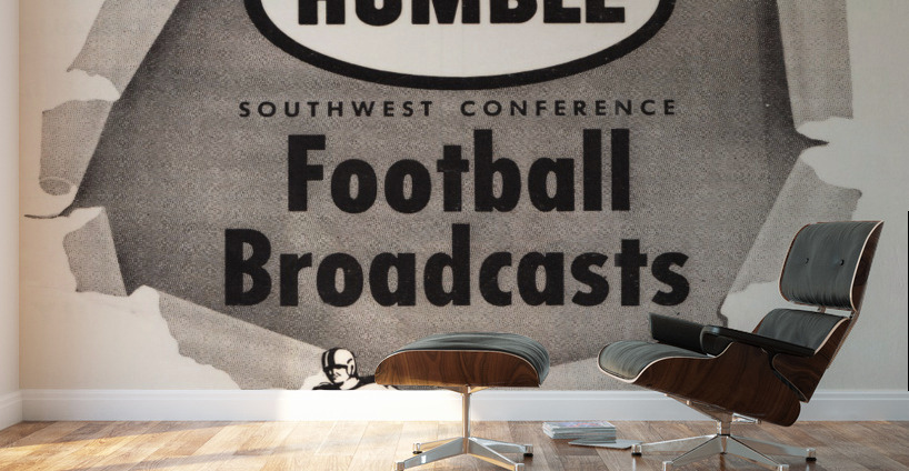 1953 Humble Oil Southwest Conference Football Broadcast Ad | Row 1 | This Row One Brand vintage Humble Oil advertising poster will look great in your game room or office. Humble Oil was founded in 1911 in Humble, Texas. Humble Oil was founded by Walter Fondren Sr, and brothers Frank and Ross Sterling. Humble Oil became Exxon on January 1, 1973. Row One Brand's historic college football advertising art prints are not affiliated with, licensed, sponsored, authorized, or endorsed by any college, university, team, league, artist, other brand, or any licensing entity. Only non-copyrighted, public domain memorabilia dating back to 1876 is used by Row One to create our historic college prints. Derivative art © 2021 Row One Brand