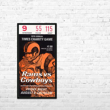 Row One's vintage sports wall art collection includes the greatest tickets and cover art in sports history as well as baseball scorecard art, retro basketball art, vintage game day ads, historic photos, cartoons, paintings, and retro 1980s sneaker posters. Use the magnifying glass icon under the Row One square logo below to help you navigate the art collection.