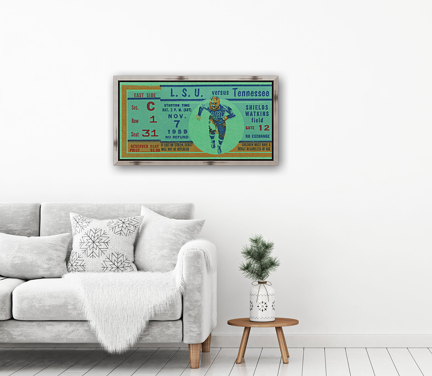 Get this artwork "1959 LSU Tigers vs. Tennessee Vols | Row 1" in a framed print.