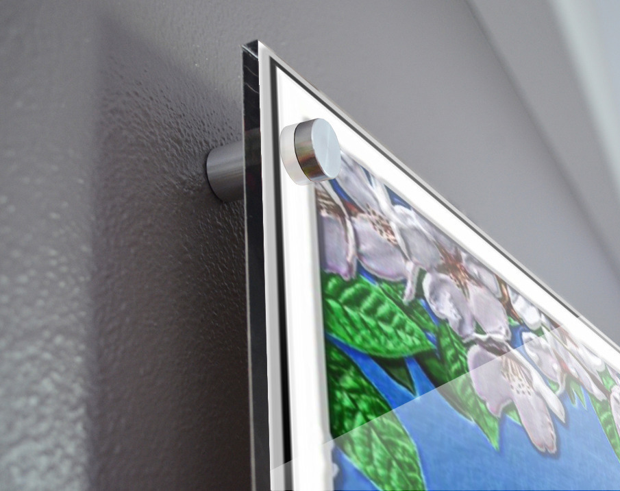 Printed to the edge - Ready to hang - provided with 4 premium polished aluminum stand off ( wall screws and mounting hardware provided )