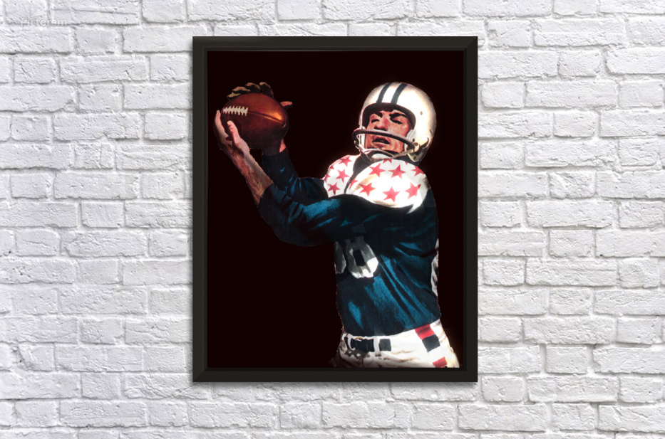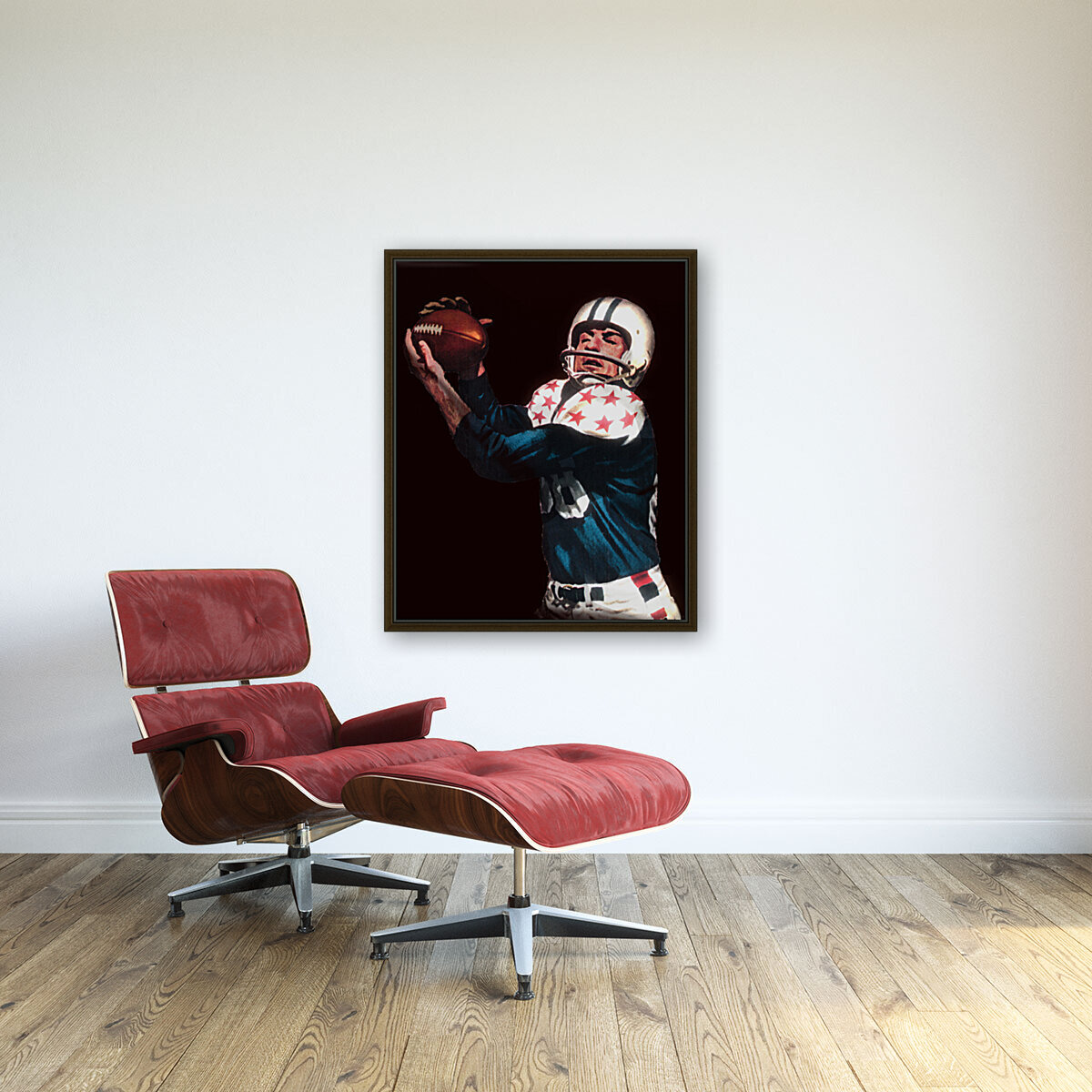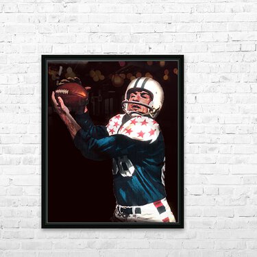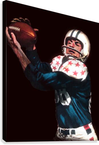 Created from authentic 1966 football catch art, this Row One Brand vintage football art will look fantastic in your game room or office. This art has been remixed to look like a catch made during a night game. Row One Brand historic football ticket art prints are not affiliated with, licensed, sponsored, authorized, or endorsed by any team, league, other artist, athlete, venue, other brand, or any licensing entity. Only non-copyrighted sports art is used by Row 1 to create our historic football prints. Our collection of non-copyrighted, historic cover art designs date back to 1876. Derivative art © 2021 Row One Brand