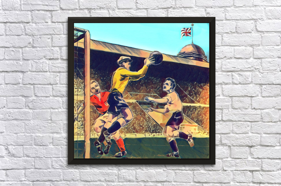 If you love Association Football, you will love this vintage soccer art created by Row One Brand showing a soccer match played at historic Empire Stadium in London, Wembley. This Row One Brand vintage sports art will look fantastic in your game room or office. Row One Brand historic sports wall art prints are not affiliated with, licensed, sponsored, authorized, or endorsed by any team, league, other artist, athlete, other brand, or any licensing entity. Only non-copyrighted memorabilia is used by Row 1 to create our historic sports wall art prints. | Row One Brand | Shop 5,500 Historic Sports Prints | 1.5 Million Gallery Views | Row 1 | Real Retro |