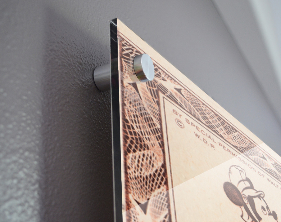 Printed to the edge - Ready to hang - provided with 4 premium polished aluminum stand off ( wall screws and mounting hardware provided )
