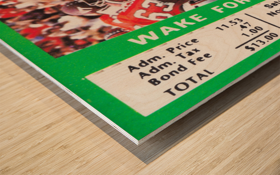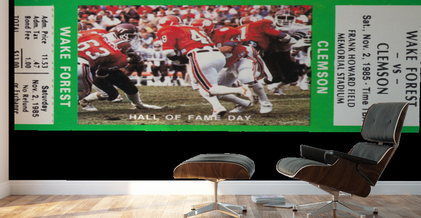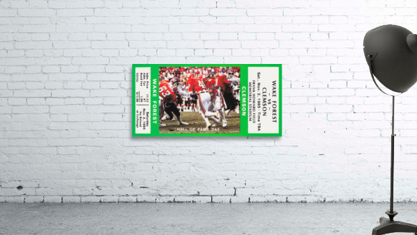 Danny Ford's Clemson Tiger football team won their 4th straight game beating the Wake Forest Demon Deacons 26-10 at Memorial Stadium in Clemson, South Carolina. This ticket stub design shows Clemson star running back #48 Kenny Flowers. Digitally restored for vivid color, Row One Brand's retro college football ticket wall art will look fantastic in your game room or office. Row One Brand's historic college football ticket stub wall art prints are not affiliated with, licensed, sponsored, authorized, or endorsed by any college, university, team, league, other artist, athlete, other brand, or any licensing entity. Only non-copyrighted ticket stubs dating back to 1893 are used by Row 1 to create our historic sports ticket art prints. Row One Brand | 5,700 Historic Sports Wall Art Prints | 1.5 Million Gallery Views | Row 1 |