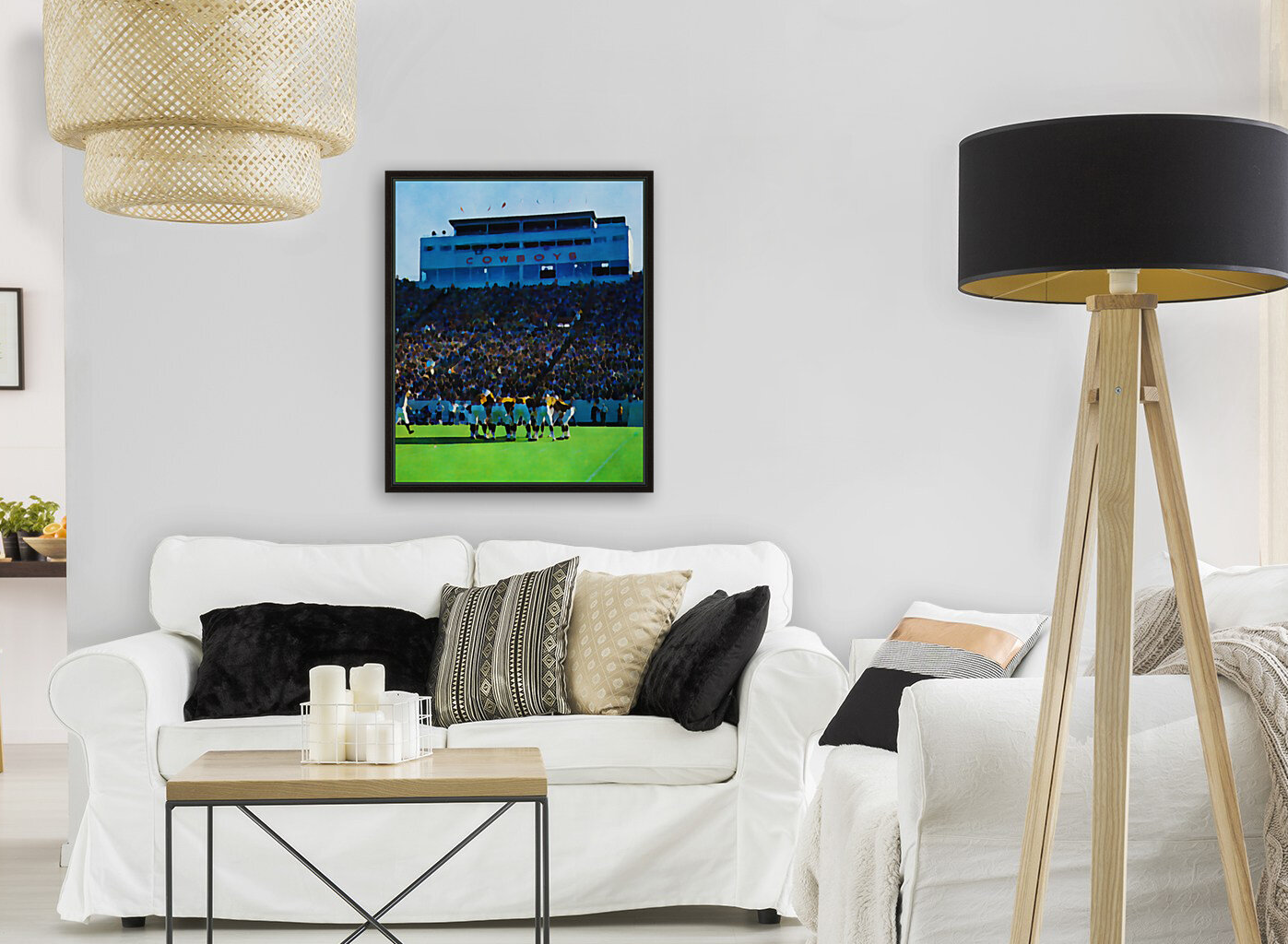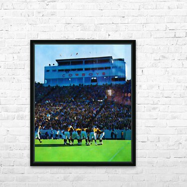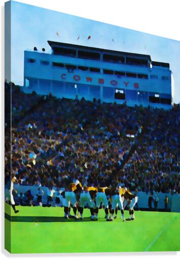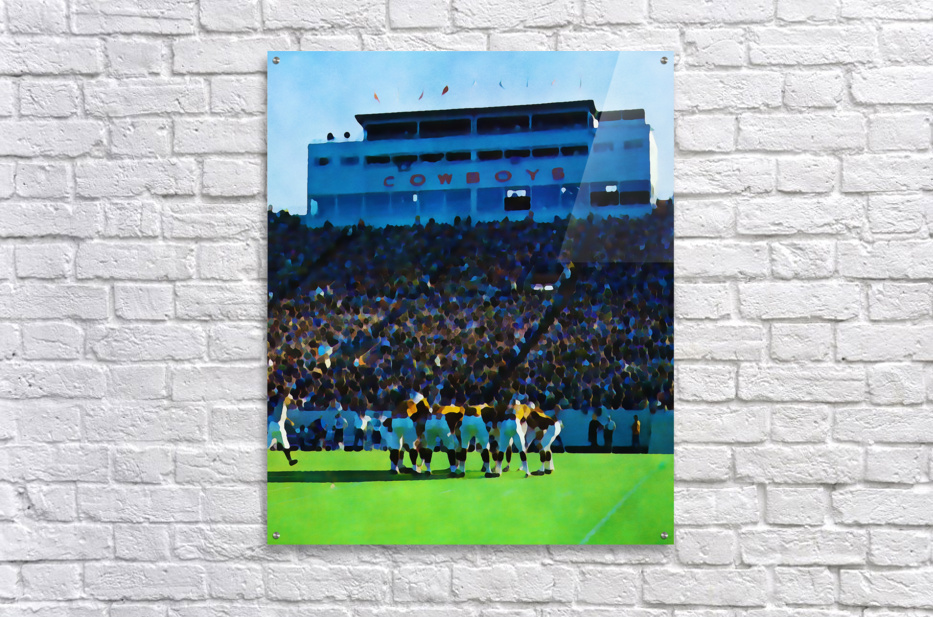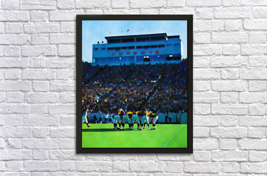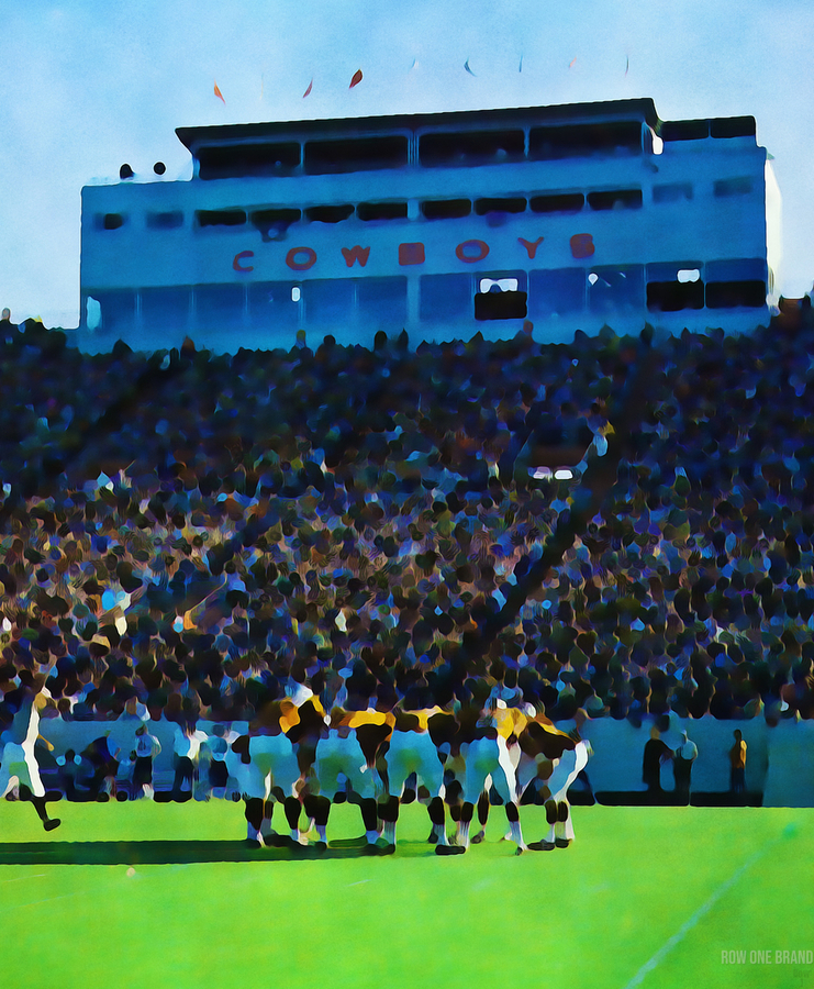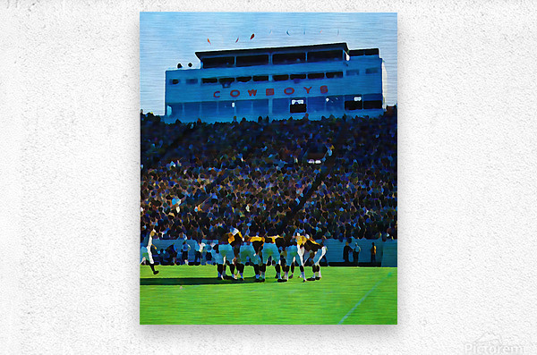 Row 1 | Real Retro | 5,700 Historic Sports Art Prints | 1.5 Million Gallery Views | | If you love Oklahoma State football, you will love this retro mixed media digital painting showing Lewis Field in Stillwater, Oklahoma in the early 1970's. Row One Brand collectible college football art prints look fantastic in game rooms and offices. Row One Brand's historic college football wall art prints are not affiliated with, licensed, sponsored, authorized, or endorsed by any college, university, team, league, other artist, athlete, other brand, or any licensing entity. Only non-copyrighted memorabilia dating back to 1876 is used by Row 1 to create our historic sports art prints. Copyright 2021 Row One Brand