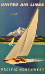 Get this artwork "Original vintage travel advertising poster for United Airlines Pacific Northwest" in a framed print.