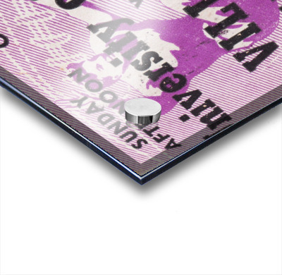 Printed to the edge - Ready to hang - provided with 4 premium polished aluminum stand off ( wall screws and mounting hardware provided )