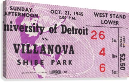 1945 DETROIT TITANS VS. VILLANOVA WILDCATS ROW ONE BRAND  Canvas Print
