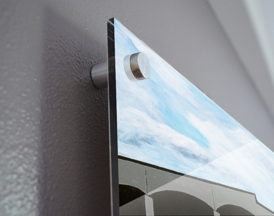 Printed to the edge - Ready to hang - provided with 4 premium polished aluminum stand off ( wall screws and mounting hardware provided )