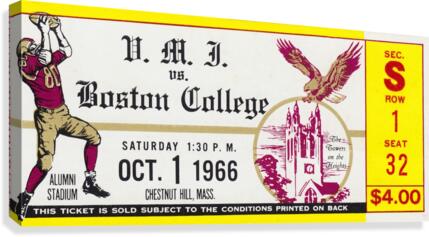 1966 VMI vs. Boston College Football Ticket Stub Art | Row One Brand | 5,800 Historic Sports Wall Art Prints | 1.6 Million Gallery Views | On October ...[+]