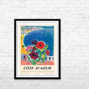 French Riviera Vintage Railway Travel Picture Frame Printing