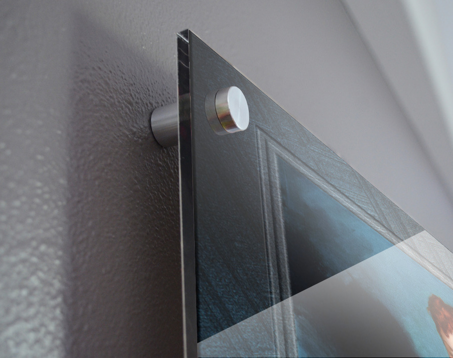 Printed to the edge - Ready to hang - provided with 4 premium polished aluminum stand off ( wall screws and mounting hardware provided )