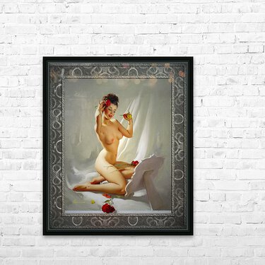Perfection by American Painter Gil Elvgren (1914 - 1980); painter, illustrator and pin-up girl artist. This is a a sweet erotic nude portrait of a yo...[+]