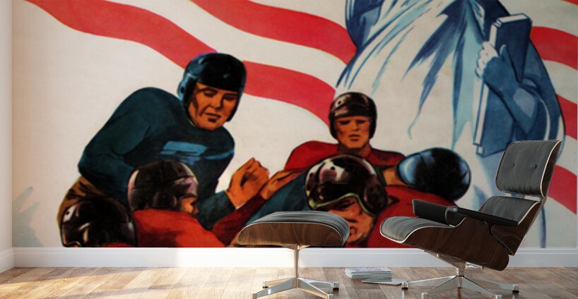 ABOUT THIS ARTWORK: 1945 PATRIOTIC WORLD WAR II ERA FOOTBALL ART