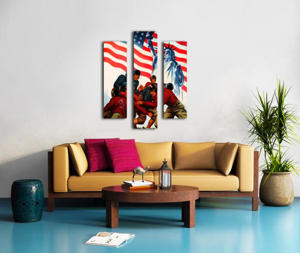 1945 PATRIOTIC WORLD WAR II ERA FOOTBALL ART ROW ONE BRAND  Canvas Print