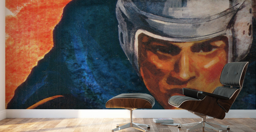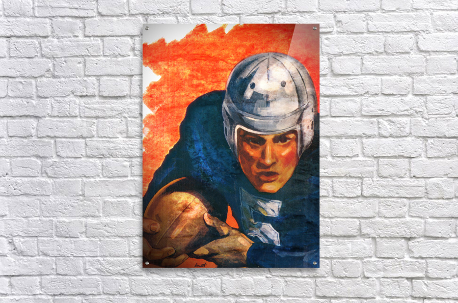ABOUT THIS ARTWORK: 1946 ORANGE AND BLUE VINTAGE FOOTBALL PLAYER ART