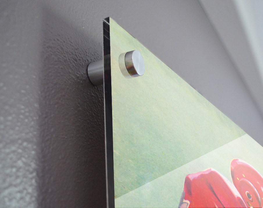 Printed to the edge - Ready to hang - provided with 4 premium polished aluminum stand off ( wall screws and mounting hardware provided )