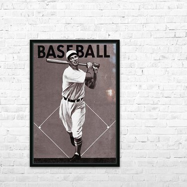 1934 Vintage Black and White Baseball Art Picture Frame Printing