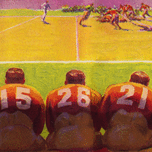 Row One's vintage sports wall art collection includes the greatest tickets and cover art in sports history as well as baseball scorecard art, retro basketball art, vintage game day ads, historic photos, cartoons, paintings, and retro 1980s sneaker posters. Use the magnifying glass icon under the Row One square logo below to help you navigate the art collection.