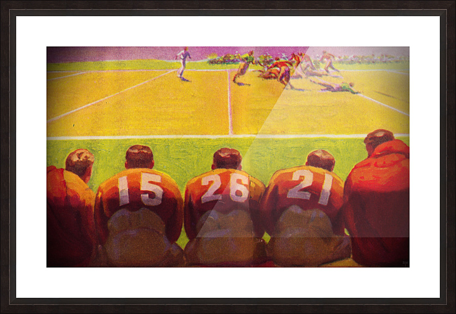 Historic Sports Wall Art Collection | Row One | 6,200 Historic Sports Art Prints | 2.2 Million Gallery Views | Row 1 | 1934 Vintage Football Sideline Art | This Row One Brand vintage football wall art was created from authentic 1934 football art in our collection. Row 1's vintage 1934 vintage football art print will look terrific in your game room or office. Use our keyword search box to search more "vintage football art". Row One Brand historic vintage football art prints are not affiliated with, licensed, sponsored, authorized, or endorsed by any college, university, team, league, other artist, athlete, other brand, or any licensing entity. Only non-copyrighted football memorabilia art is used by Row One to create our historic football wall art prints. Derivative art © 2021 Row One Brand
