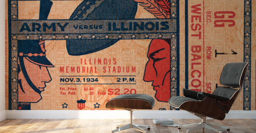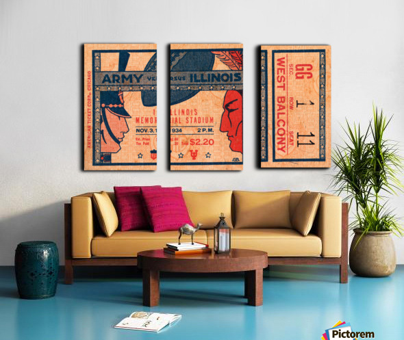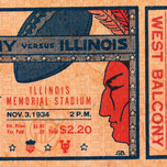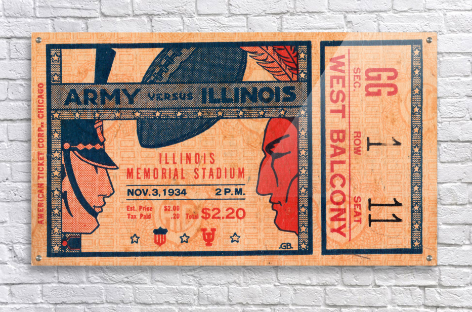 Black Friday Sale | Big Ticket Items | Row One Brand | 6,200 Historic Sports Art Prints | Vintage College Football Art | 2.1 Million Gallery Views | Row 1 | 1934 Army vs. Illinois Football Ticket Art | The Illini won 7-0 as part of a six game winning streak. Illinois finished 7-1 in 1934. Use our keyword search box to search more "vintage football art" or "football tickets" art. Row One Brand historic college football ticket sports art prints are not affiliated with, licensed, sponsored, authorized, or endorsed by any college, university, team, league, other artist, athlete, other brand, or any licensing entity. Only non-copyrighted sports tickets are used by Row One to create our historic sports ticket wall art prints.