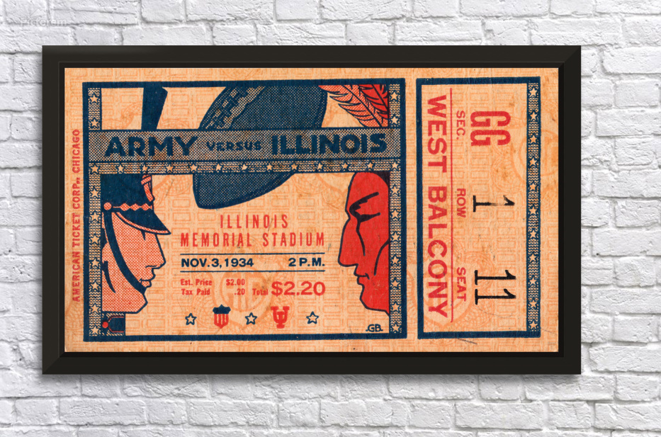 1934 Army vs. Illinois Football Ticket Stub Frame print