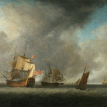 Reflecting his early career, many of his paintings have naval themes. Working for a publisher documenting the events in the Seven Years War (1756–1763), he painted a series of depictions including the capture of Havana (1762). He also painted events in the American War of Independence (1776–1783). In 1780, he was appointed Marine Painter to King George III.