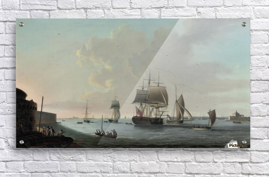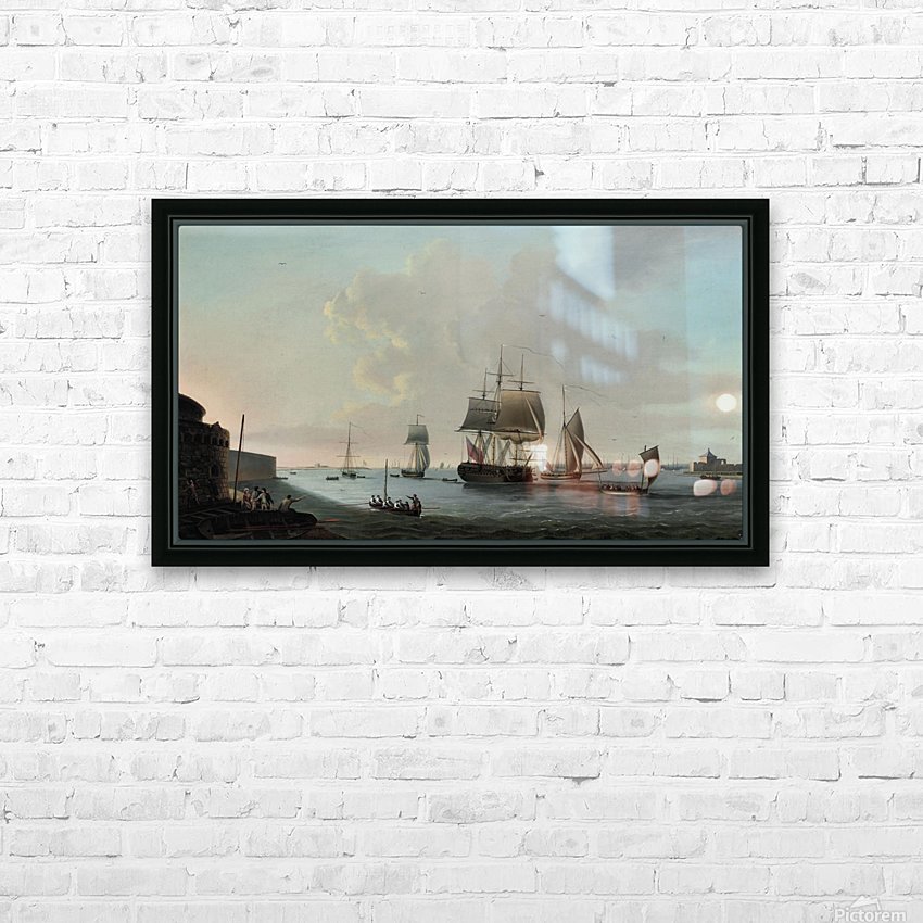 An English frigate running into Portsmouth harbour  HD Metal print with Floating Frame on Back