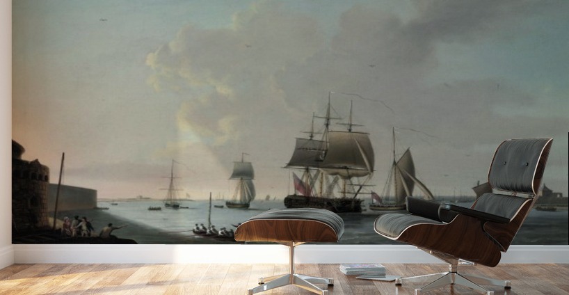 Get this artwork "An English frigate running into Portsmouth harbour" in a framed print.