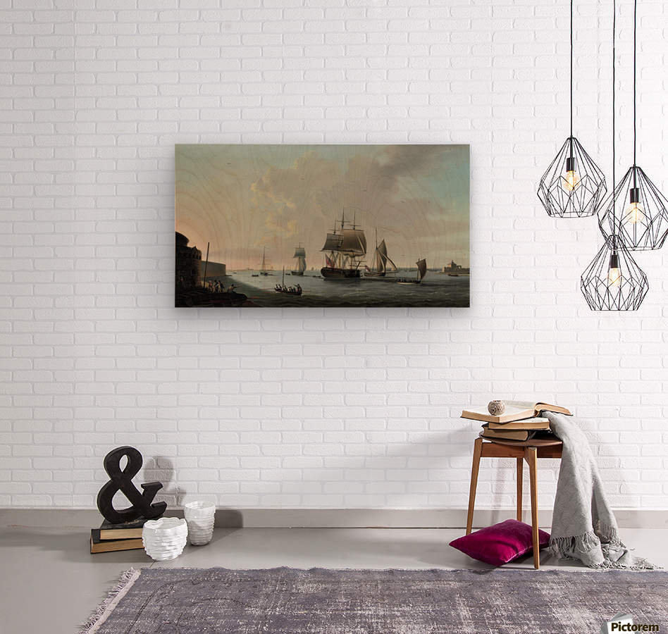 An English frigate running into Portsmouth harbour  Wood print